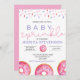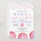 Ce baby shower personnalisable présente des beignets roses à l'aquarelle avec des arroses. Les couleurs sont parfaites pour une douche bébé fille.