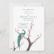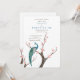 Une invitation exotique avec un paon bleu et sarcelle perché sur une branche d'un arbre en fleurs. <a href='https://www.freepik.com/vectors/background'></a>La carte est facile à personnaliser avec votre libellé, police, couleur de police, options de forme de papier et choix parmi six types de papier.<br/><br/>Pas exactement ce que vous cherchez ? Tous nos produits peuvent être conçus sur mesure pour répondre à vos besoins sans frais supplémentaires.<br/><br/>Contactez-nous simplement à askcottonlamb@gmail.com.<br/><br/>Produits coordonnés disponibles : Demandez-nous !