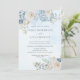 Invitation Aquarelle Dusty Blue Flowers Mariage Rose