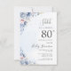 Aquarelle Dusty Blue Boho Chic Budget Surprise 80e fête d'anniversaire Cette conception élégante et délicate présente une aquarelle claire bleu foncé thème floral. Personnalisez l'invitation avec vos détails et si vous voulez réorganiser le style et le placement du texte, veuillez appuyer sur le bouton "Cliquez pour customiser plus loin". Pour plus de produits dans le même thème visitez ma boutique : Youtopia Official.