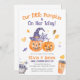Notre Petite Invitation Baby shower Citrouille - Éffrayant & mignon Aquarelle Design Célébrez l'arrivée de votre petit citrouille avec cette adorable invitation baby shower! Dotée d'une aquarelle de citrouilles jack-o-lanterne, d'un casquette de sorcière et de détails éffrayants d'Halloween, cette invitation est parfaite pour un baby shower festif et amusant. Personnalisez l'invitation avec le nom des parents et les détails de l'événement pour un souvenir mémorable.