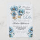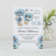 Invitation Aquarelle Elégante Blue Gold Floral 50e anniversai