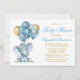 Invitation Aquarelle Eléphant Ballons Douche Bleu Or