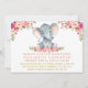 Invitation Aquarelle Eléphant rose Floral Baby shower or