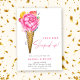 Cette douche nuptiale à thème crème glacée est décorée de fleurs d'aquarelle et d'un cône de crème glacée. Le texte dit "Elle a été scoopée !" dans la typographie stylée rose.
