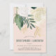 Une jolie et moderne invitation à la douche nuptiale dans la parties scintillant vert sauge, rose vif et faux or, avec roses et feuilles aquarelle et police de style lettré brosse. Le verso a un motif de diamant lié en blanc sur un arrière - plan vert sage.