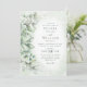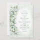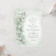 Ce design d'invitation de mariage rêveur et élégant présente une aquarelle de la verdure d'eucalyptus s'estompant dans l'arrière - plan, avec une texture arrière - plan d'aquarelle verte sauge, et un monogramme moderne dans une couronne feuillue sur le dos. Trouvez des produits correspondants pour compléter votre suite d'invitations, dans la collection.