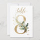 Belle carte de numéro de table avec un motif botanique - une aquarelle illustration de feuilles verts et or. Tableau 8. Veuillez vérifier tous les numéros disponibles