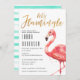 Donnez à votre douche un thème tropical avec cette belle aquarelle rose flamingo avec arrière - plan rayé de menthe Let's Flamingle invitation douche.
