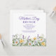 Une belle invitation à Brunch de la Fête des Mères thème printemps pour elle. L'arrière - plan présente des fleurs d'aquarelle mélangées et de la verdure sur le blanc. Les couleurs principales sont le blanc, le vert, le violet et le jaune doré. La couleur de police est définie pour correspondre à la lavande violette.