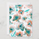 Fleurs d'aquarelle romantique faire-part de mariage avec courre fleurie turquoise sur le devant et fleurs d'aquarelle motif sur le côté arrière.