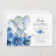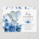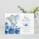 Invitation Aquarelle Fleurs Bleues Baby shower éléphant