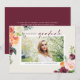 Célébrez votre graduation avec cette invitation à la graduation photo personnalisable, avec de belles fleurs d'aquarelle dans des tons chauds d'automne. Ce design élégant capte l'essence de la saison tout en vous permettant de personnaliser l'invitation avec votre propre photo et détails. Cette invitation à l'obtention d'un diplôme floral est parfaite pour les diplômés de l'automne, que ce soit pour les diplômes du secondaire ou collégial. Cette invitation à la remise des diplômes sur le thème de l'automne est la meilleure façon de partager votre moment d'étape avec vos amis et votre famille. Que vous l'envoyiez pour un baccalauréat, un baccalauréat ou une autre réussite scolaire, ce design personnalisé donnera le ton d'une célébration mémorable.