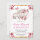 Elégante aquarelle Fleurs roses dans canne d'arrosage et agneau mou avec papillons design avec bordures de feuille d'or et confettis de parties scintillant
