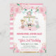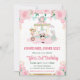 Invitation Aquarelle Fleurs roses Animaux Fête d'anniversaire