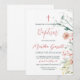 Invitation Aquarelle Fleurs rouges et vertes Fille Baptême