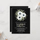 Elégant bouquet d'aquarelle de fleurs d'anémones noir et blanc et de feuilles sur un arrière - plan noir, les détails de la cérémonie de mariage sont présentés en lettrage blanc chic. Modifiez l'arrière - plan de base noire en n'importe quelle couleur pour correspondre à votre thème mariage. CORRESPONDRE des articles dans notre magasin.