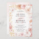 Faire-part de mariage à fleurs aquarelle. Belle décoration élégante aux accents botaniques tropicaux peints à la main. Avec ses délicats roses d'aquarelle, ses pivoines, ses feuilles de bananes séchées, son gazon de pampas et sa police de typographie branchée. Vous pouvez choisir des invitations imprimées et/ou le modèle numérique de téléchargement instantané. Personnalisez avec vos propres détails. Idéal pour une réception romantique romantique et rêvée de mariage.