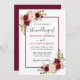 Elégante Faire-part de mariage d'aquarelle de Bourgogne avec roses bordeaux, roses roses roses, fleurs de roses rouges et verdure botanique - Bourgogne Retour