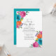 La fiesta florale d'aquarelle se déplace à travers l'invitation nuptiale ou baby shower avec la typographie par écriture manuscrite et l'aquarelle turquoise inverse.