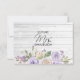 Bouquet rustique floral simple design en aquarelle (aquarelle) verte, lavande, violet, violet, lilas, rose rousse, pêche, roses de fleurs blanches / pivoine sur bois blanc / gris arrière - plan et noir. Délicates invitations à la douche nuptiale mariage pour ce thème du printemps ou de l'été. Cartes extérieures parfaites. Le dos de la carte a le nom de la future mrs.