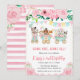 Invitation Aquarelle Floral Rose Circus Animaux Anniversaire