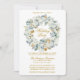 Invitation Aquarelle Florale Dusty Blue Gold Fête