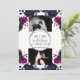 Invitation Aquarelle florale rose magenta bleu épais Date de