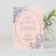 Belle faire-part de mariage aquarelle fleurie avec bouquets de fleur sauvage boho dans les tons violet, lilas, violet, pêche, rousse, bleu poussiéreux et verts avec texte rose or ou terre cuite et accentué sur le dos avec une couleur solide modifiable pour coordonner avec vos couleurs mariages (l'échantillon montre une couleur de pêche en terre cuite). MODIFICATIONS : Les couleurs du texte et de l'arrière - plan peuvent être modifiées pour correspondre à votre jeu de couleurs en cliquant sur CUSTOMISER PLUS loin dans la section PERSONNALISER pour une conception personnalisée. Contactez le concepteur via Zazzle Conversation ou makeitaboutyoustore@gmail.com si vous souhaitez modifier ce design, sur un autre produit ou si vous souhaitez coordonner des éléments.