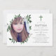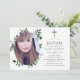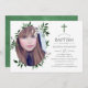 Une verte forêt boisée sauvage branchée Baptême ou carte d'invitation Christening conçue pour être rapidement et facilement customisée à vos spécificités. Une photo en forme de portrait est conseillée.