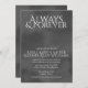 Faire-part de mariage gris charbon avec Toujours & Forever écrit sur un arrière - plan aquarelle.