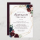 Cette invitation de brunch aux couleurs vives géométriques est parfaite pour un simple wedding shower. Le design est composé d'une aquarelle artistique peinte à la main bleu marine, bordeaux, rouge, roses roux et pivoines avec d'élégants feuilles verts, inspirant la beauté idyllique colorée de l'automne.