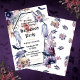 Célébrez l'Halloween dans le style éffrayant avec cette invitation gothique aquarelle pour adultes. Comprend un cercueil entouré de fleurs, chauves-souris, un corbeau, crâne, fantôme, toile de cobaye et araignée. Parfait pour les fêtes d'Halloween, les événements costumés ou les rassemblements éffrayants. Le texte personnalisable le rend idéal pour envoyer un invitation obstinément élégant à vos amis.