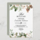 Invitation Aquarelle Hiver Pin vert Arbre et Fleurs blanches