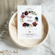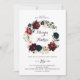 Cette faire-part de mariage de courroie florale illustrée par l'aquarelle est parfaite pour un mariage simple. Le design est composé d'une aquarelle artistique peinte à la main bleu marine, bordeaux, rouge, roses roux et pivoines avec d'élégants feuilles verts, inspirant la beauté idyllique colorée de l'automne.