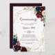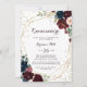 Cette aquarelle illustrée d'or géométrique Quinceañera invitation est parfait pour une simple fête de 15ème anniversaire. Le design est composé d'une aquarelle artistique peinte à la main bleu marine, bordeaux, rouge, roses roux et pivoines avec d'élégants feuilles verts, inspirant la beauté idyllique colorée de l'automne.