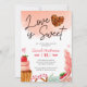 Cette invitation à la douche nuptiale à l'aquarelle comporte un charmant cupcake et un biscuit à puce en chocolat en forme de coeur, avec un arrière - plan d'aquarelle rose et une police douce et ludique qui dit "L'amour est doux". Ce design est parfait pour une douche nuptiale qui est amusante, romantique et pleine d'amour. L'invitation est facile à customiser avec vos coordonnées de douche de la mariée, y compris le nom de la mariée, la date, l'heure, l'emplacement et les informations RSVP.