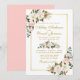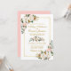 Invitation Aquarelle Magnolias Rose Floral Mariage Or