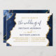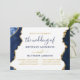 Aquarelle moderne Elégante Bleu et Or Marbre Agate Géode Faire-part de mariage. Script de calligraphie branché. Texte Or.