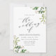 Des invitations de mariage botaniques élégantes, avec des feuilles d'aquarelle dans les tons de printemps et de vert mousse aux coins du design. L'expression "Le Mariage de" est affichée dans un script de calligraphie chic. Personnalisez le faire-part de mariage de verdure boho avec vos noms détails mariages. Le faire-part de mariage botanique moderne est parfait pour les mariages du printemps et de l'été.