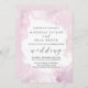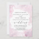 Cette carte de faire-part de mariage rose et violet est parfaite pour un mariage moderne. Le design est doté d'une aquarelle rose pâle douce avec du texte gris.