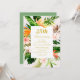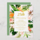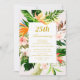 25e anniversaire mariage invitation avec lettrage, verdure tropicale et fleurs roses. Le texte et les couleurs peuvent être modifiés.