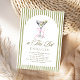 Célébrez la mariée à être en style avec cette invitation à la douche nuptiale amusante et élégante A Tini Bit Engaged! Doté d'un élégant martini aquarelle orné d'olives vertes et d'un arc rose doux, cet hôtel est parfait pour des douches nuptiales sur le thème du cocktail ou des célébrations modernes avec une touche de glamour. Conduit à une bordure minimaliste à rayures vertes, il allie élégance et charme ludique. Idéal pour les épouses qui aiment une touche de tradition branchée, cette invitation est entièrement personnalisable et disponible en téléchargement numérique, ce qui rend la planification mariage facile, élégante et amusante