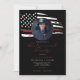 Cette invitation à la retraite comporte une couleur d'aquarelle affaissée, un mince drapeau rouge et une couleur arrière - plan noire en gras. Cette invitation peut être utilisée pour célébrer les pompiers ou toute autre profession car les couleurs sont 100% modifiables. Ajoutez une photo à l'avant pour une touche personnelle.