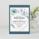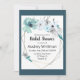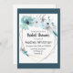 Un délicieux spray de fleurs dans les tons bleu brouillard, turquoise, gris colombe et blanc ornent cette invitation à la douche nuptiale féminine. Le cadre en or métallique asymétrique apporte une touche de finition parfaite.
