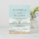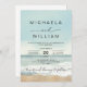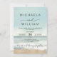 Ce design d'invitation de mariage sur la plage exhale l'élégance côtière avec une eau de mer sereine et la rive sablonneuse. Les tons pastel doux créent une atmosphère romantique et paisible, idéale pour les mariages balnéaires ou de destination. La typographie sans-serif moderne associée à une police de script délicate ajoute une touche contemporaine mais intemporelle. L'aménagement propre permet de lire facilement tous les détails essentiels, tandis que le thème océanique reflète magnifiquement la beauté naturelle d'une fête au bord de la plage. Idéal pour les couples à la recherche d'un cadre chic et sophistiqué pour passer une journée spéciale en bord de mer à une clientèle d'invitations. Disponible sous forme de cartes imprimées ou en téléchargement numérique instantané.