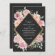 Invitation Aquarelle moderne fleurie Noir et or Mariage