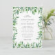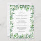 Faire-part de mariage moderne aquarelle verdure avec détails mariages à l'intérieur d'un cadre verdoyant.