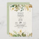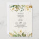 Invitation Aquarelle moderne verte Feuilles et gouttes d'or