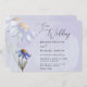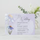 Les invitations de mariage modernes des Fêtes à thème comprennent des marguerites Gerbera bleu violet et une typographie de script moderne associée à des lettres serif traditionnelles. L'aménagement est conçu sur des éclaboussures d'aquarelle bleu violet pâle assorties sur un arrière - plan pastel lavande. #Mariage #MariageDePrintemps #MariageModerne
